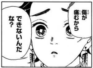 炭治郎は『そうか傷が痛むからできないんだな』と謎の解釈。